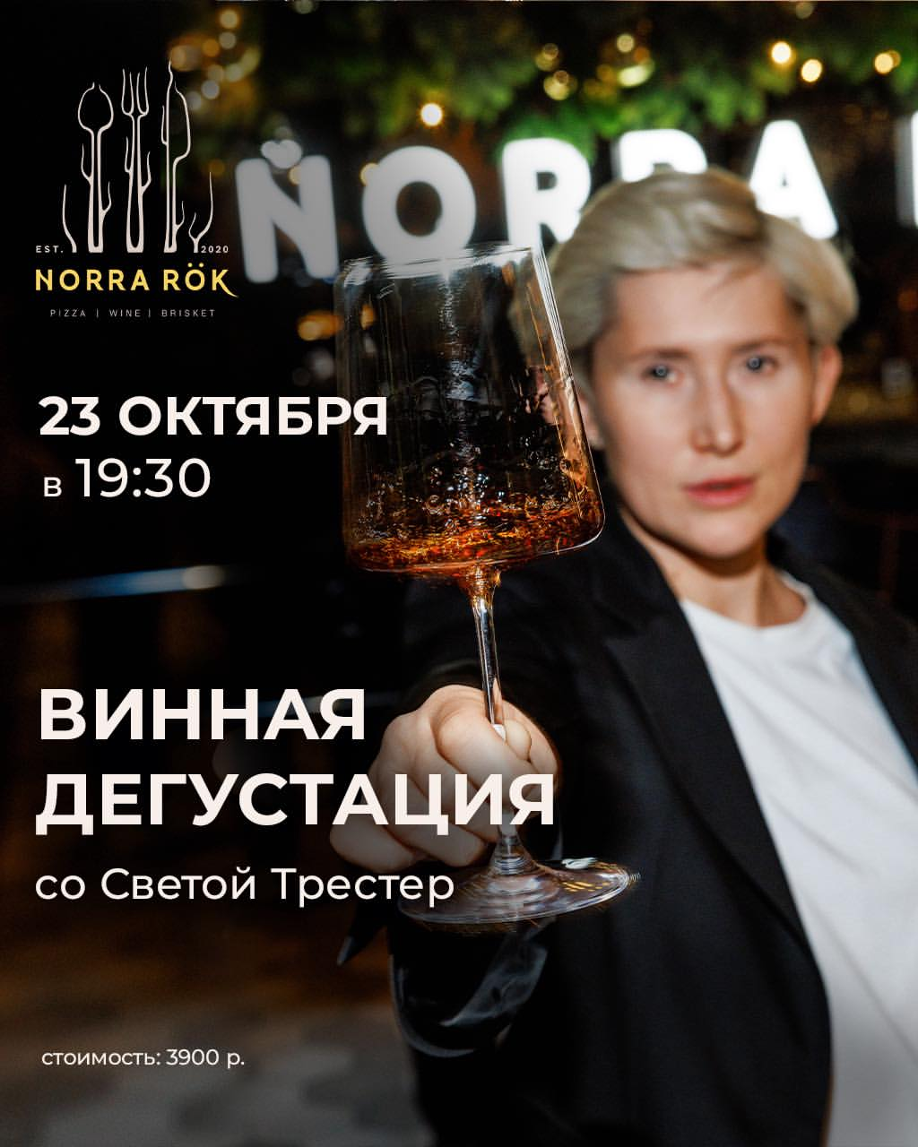 В четверг, 23 октября, в 19:30 Света Трестер проведёт вас сквозь ароматы забываемых сортов и неожиданные пары с авторскими закусками от шефа.