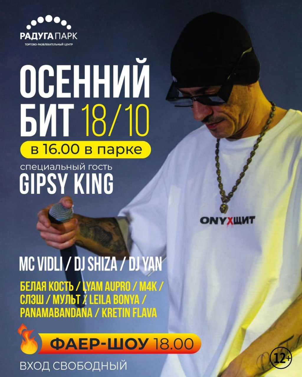 18 октября в Радуга Парке пройдет рэп-фестиваль с участием "Белой Кости", LYAM AUPRO, Gypsy King и других! 🎶