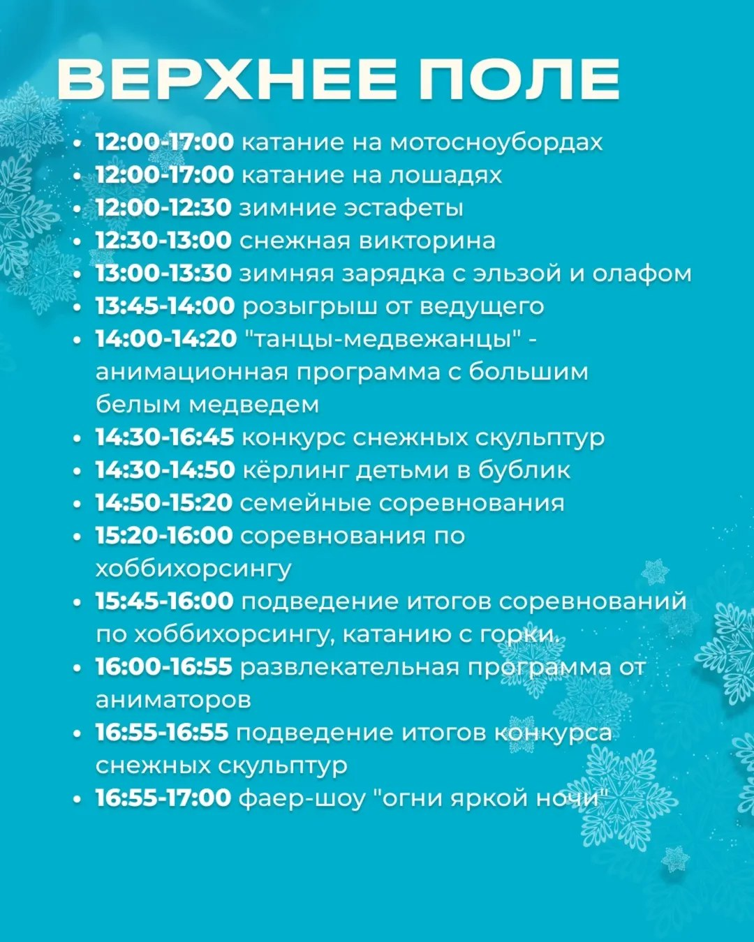 — 🎿 Катания, игры и соревнования на свежем воздухе.