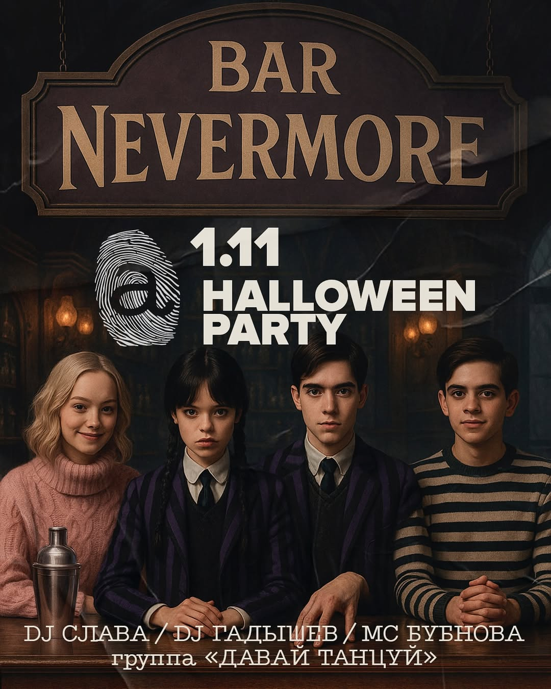 🎭 Дресс-код: образы в духе семейки Аддамс, Готэм-сити или вашей самой креативной тьмы.