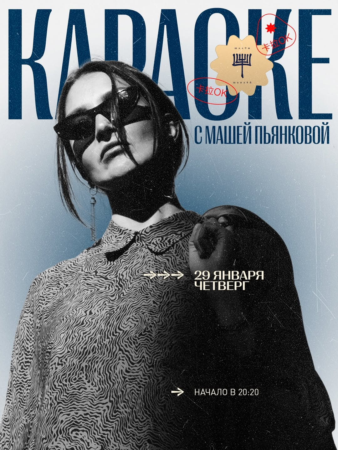 Маша Пьянкова, королева караоке-вечеринок, мягко проведёт вас через море эмоций, подскажет слова и сделает вид, что всё под контролем (хотя мы знаем, что это не так 😏).