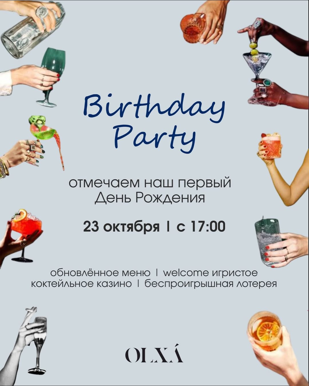 Готовьтесь к главной вечеринке этой осени! 23 октября с 17:00 Olxa Bistro угощает всех именинным меню, шампанским и морем развлечений 🥂