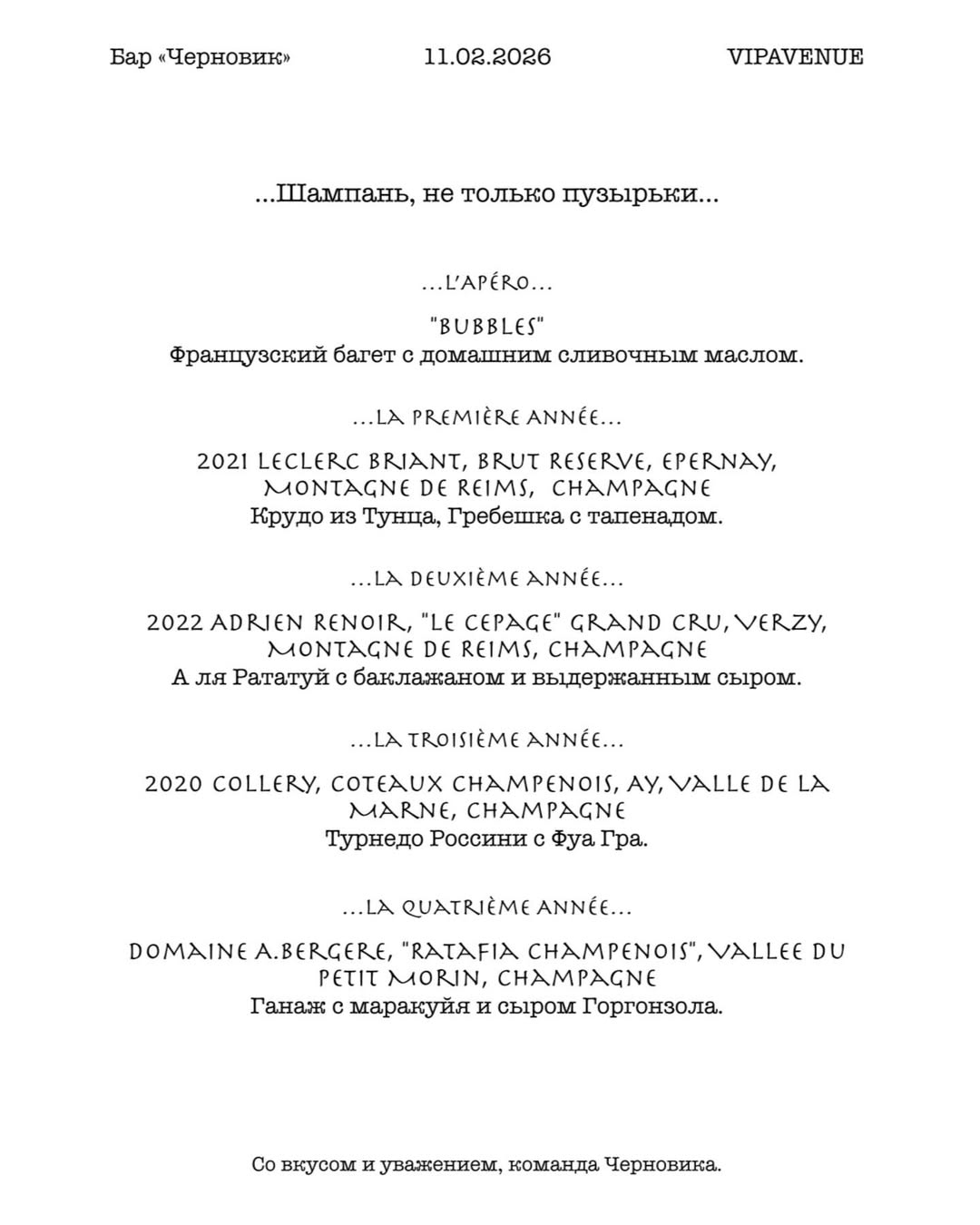 Готовы к пузырькам и веселью? Приглашаем на винный ужин в баре "Черновик"!