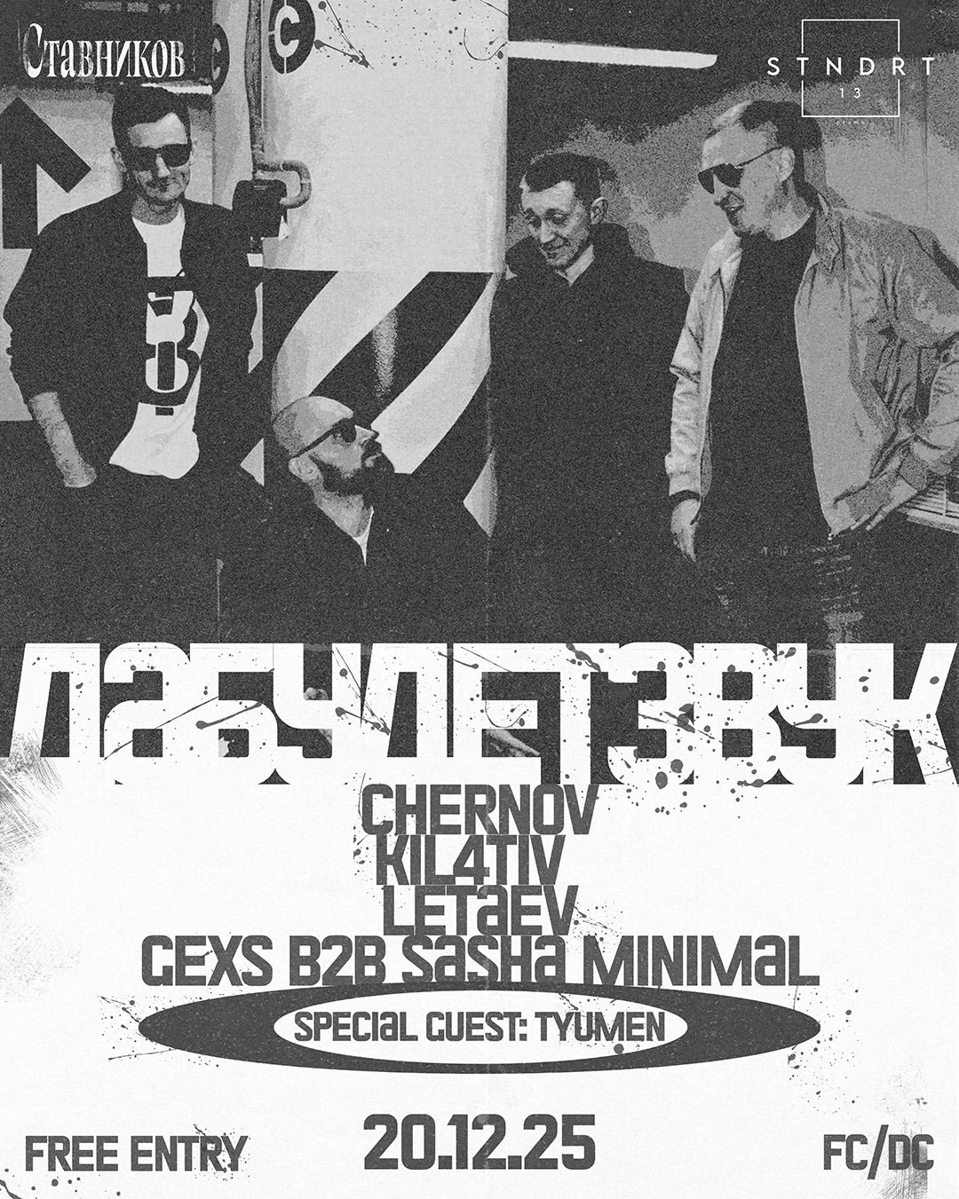 STNDRT13 берёт управление звуком в свои руки и обещает ночь, наполненную лёгкими, но мощными танцевальными сетами. Современный хаус превратит субботний вечер в нескончаемый поток энергии и ритма. Готовьтесь отпустить мысли и двигаться под бит, который заставит сердце биться чаще 💃