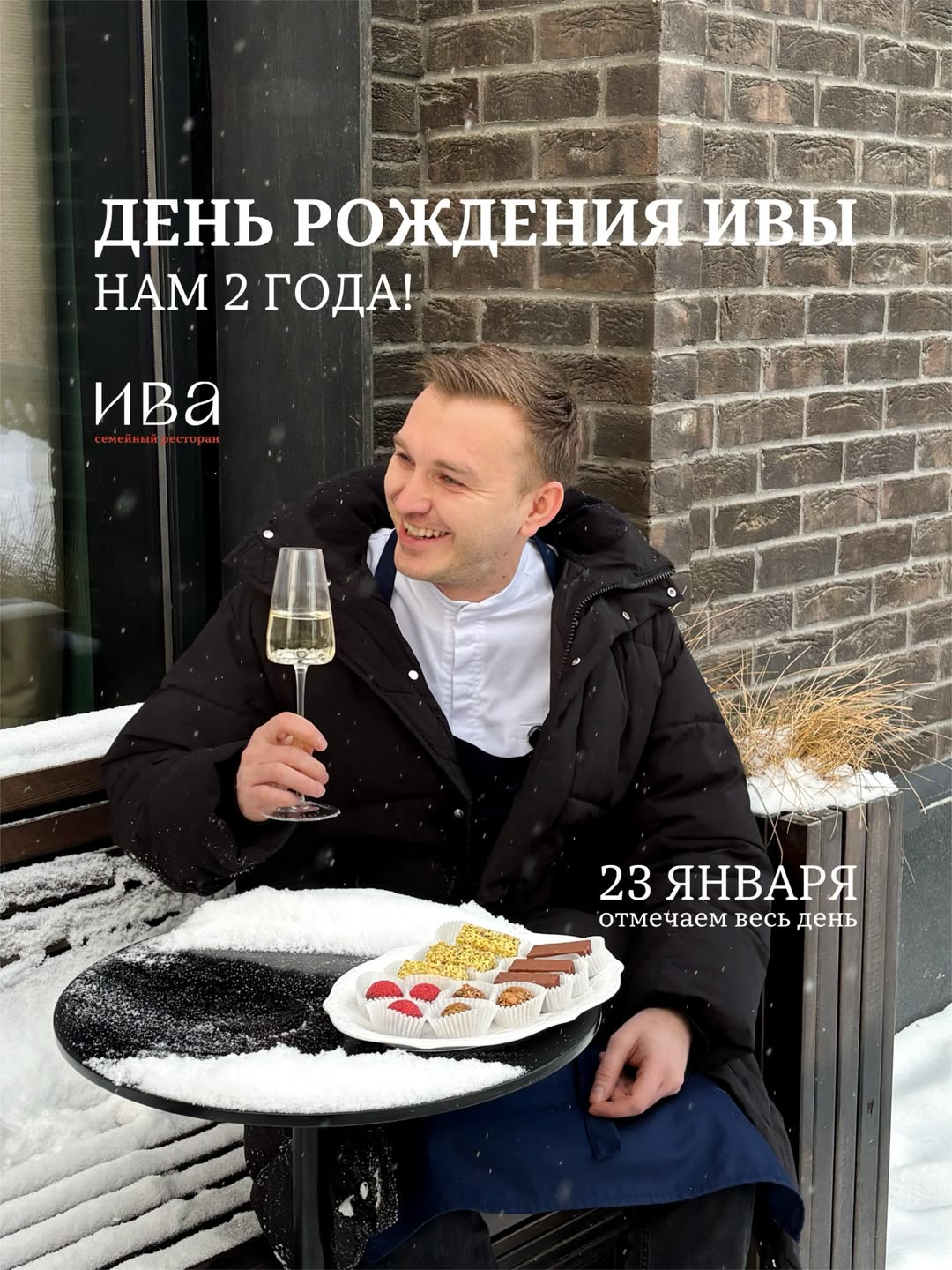 23 января ресторан IVA празднует свой второй день рождения — и делает это весь день. Всех гостей угощают игристым и лимитированными конфетами ручной работы: от шоколадного трюфеля с малиной до «птичьего молока» с фисташками.