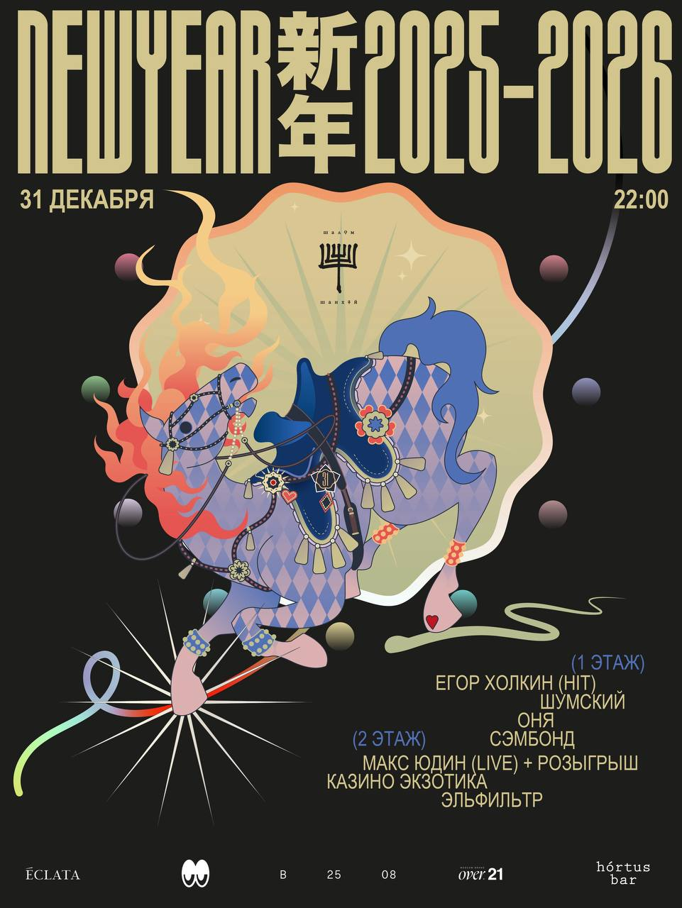 Этот Новый год обещает быть незабываемым. Первый этаж погрузит вас в атмосферу классной музыки с Оней, DJ Kaif, Шумским и Егором Холкиным, который продолжит качать танцпол до самого рассвета. А ровно в полночь — куранты, чтобы загадать самое заветное желание ⏳