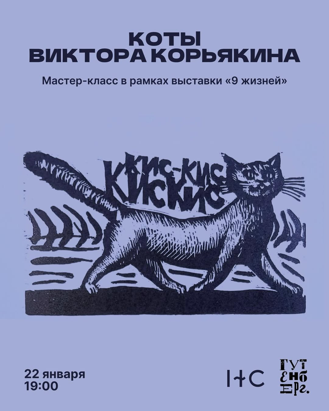 22 января в Nelson Sauvin Bar пройдёт «Печатный четверг» с Gutenberg — мастер-класс по линогравюре «Коты Виктора Корьякина» в рамках выставки «9 жизней» 🖤