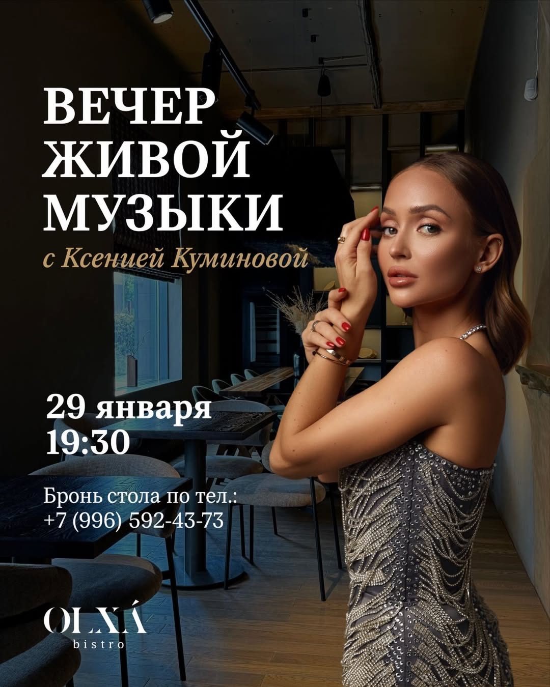 🎤 живой вокал от Ксении Куминовой — финальное послевкусие к бокалу вина и тёплому ужину