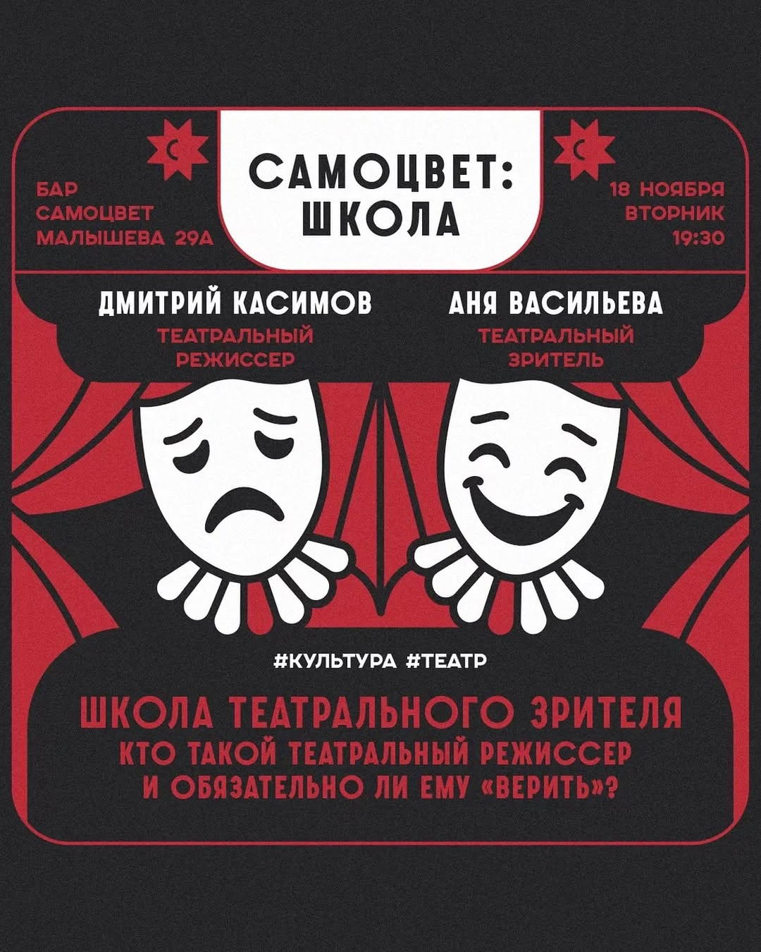 Узнаем: можно ли научиться разбираться и любить театр, и зачем режиссёру доверять — уже 18 ноября в «Самоцвете».