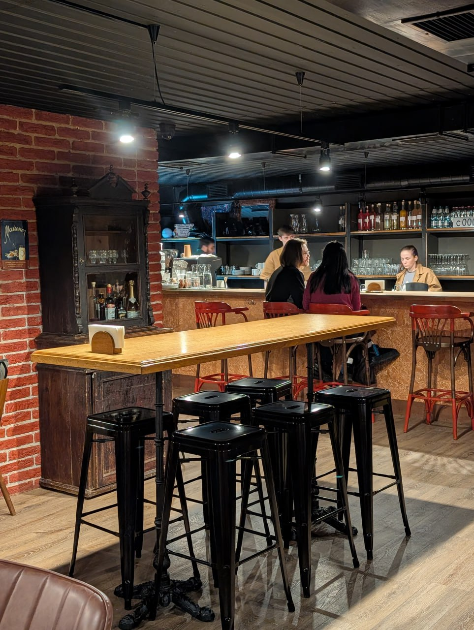 Что такое «союз» — каждый решит сам, но на практике это длиннющая стойка, винтажные чешские стулья, коммунальный стол и несколько уютных уголков для почти-приватных разговоров.